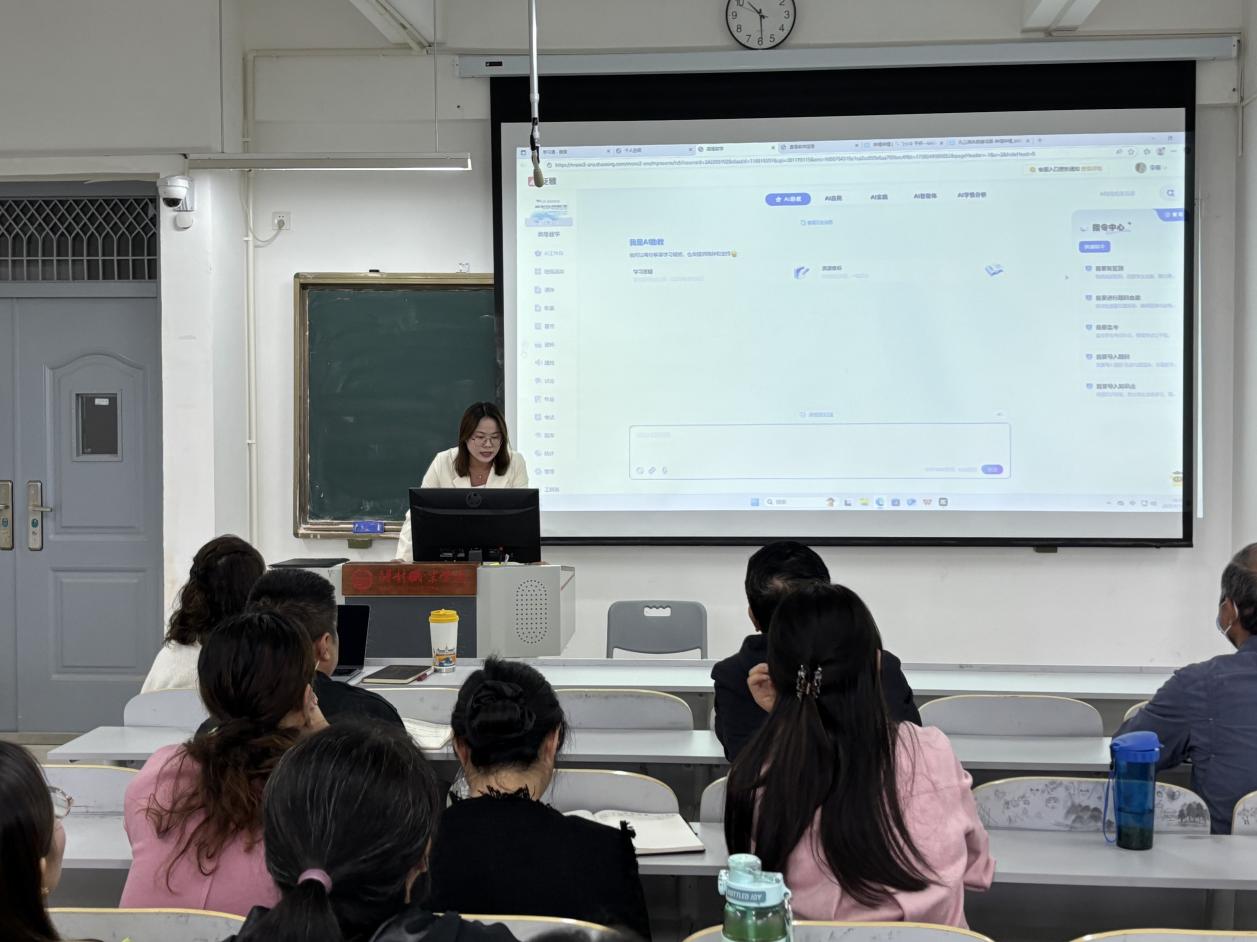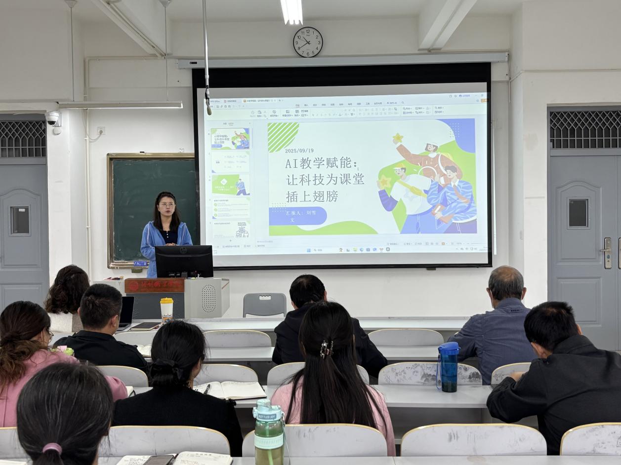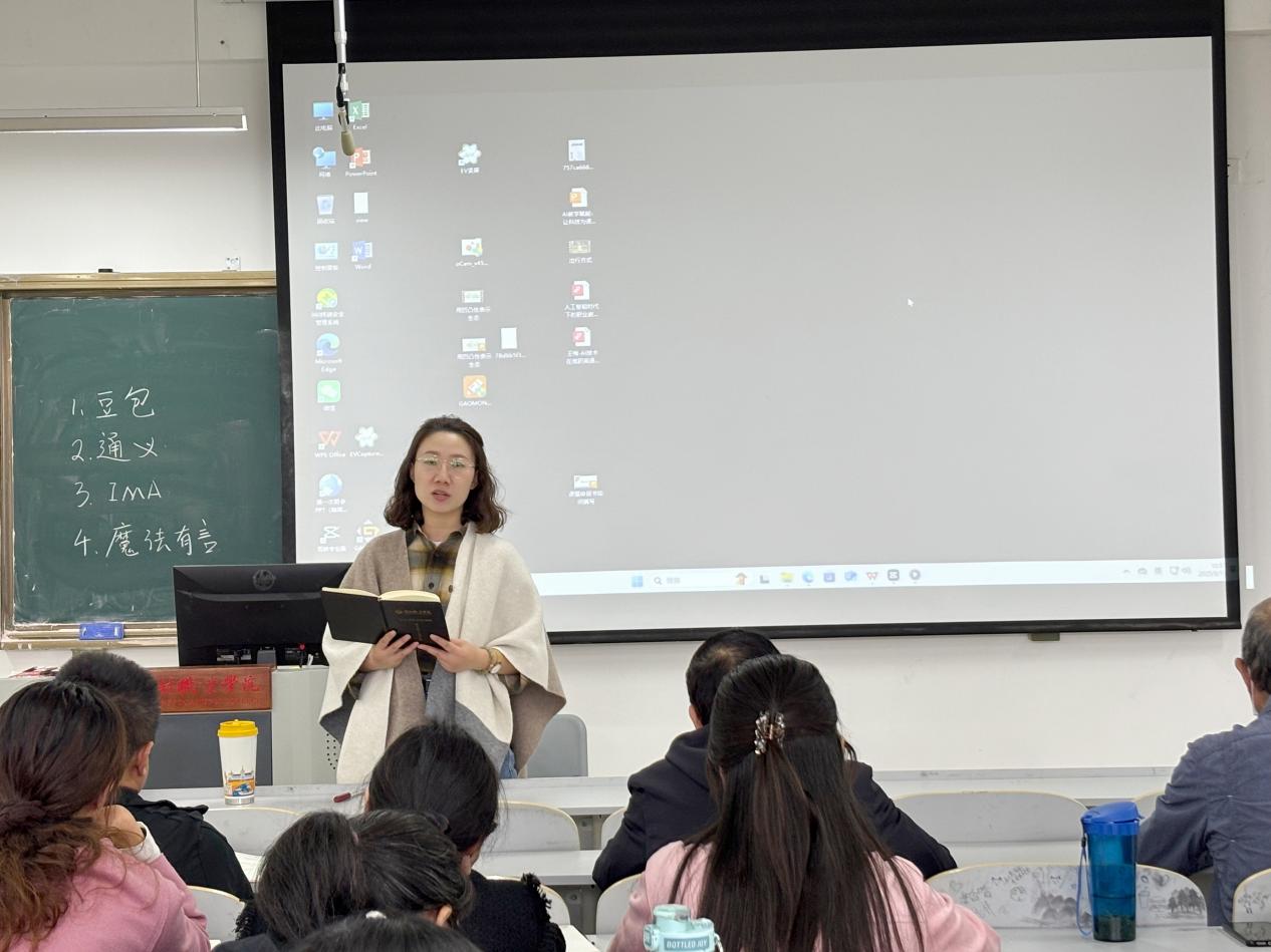 刘雪文老师则以《AI教学赋能:让科技为课堂插上翅膀》为主题,带来了一场富有前瞻性的分享。她指出,在数智时代背景下,人工智能已深度融入教育全过程。通过案例展示,她介绍了AI在智能备课、个性化教学、精准评价等方面的应用场景,强调AI是教师的“超级助手”,能够有效减轻教学负担、释放创造力,推动课堂模式转型升级。