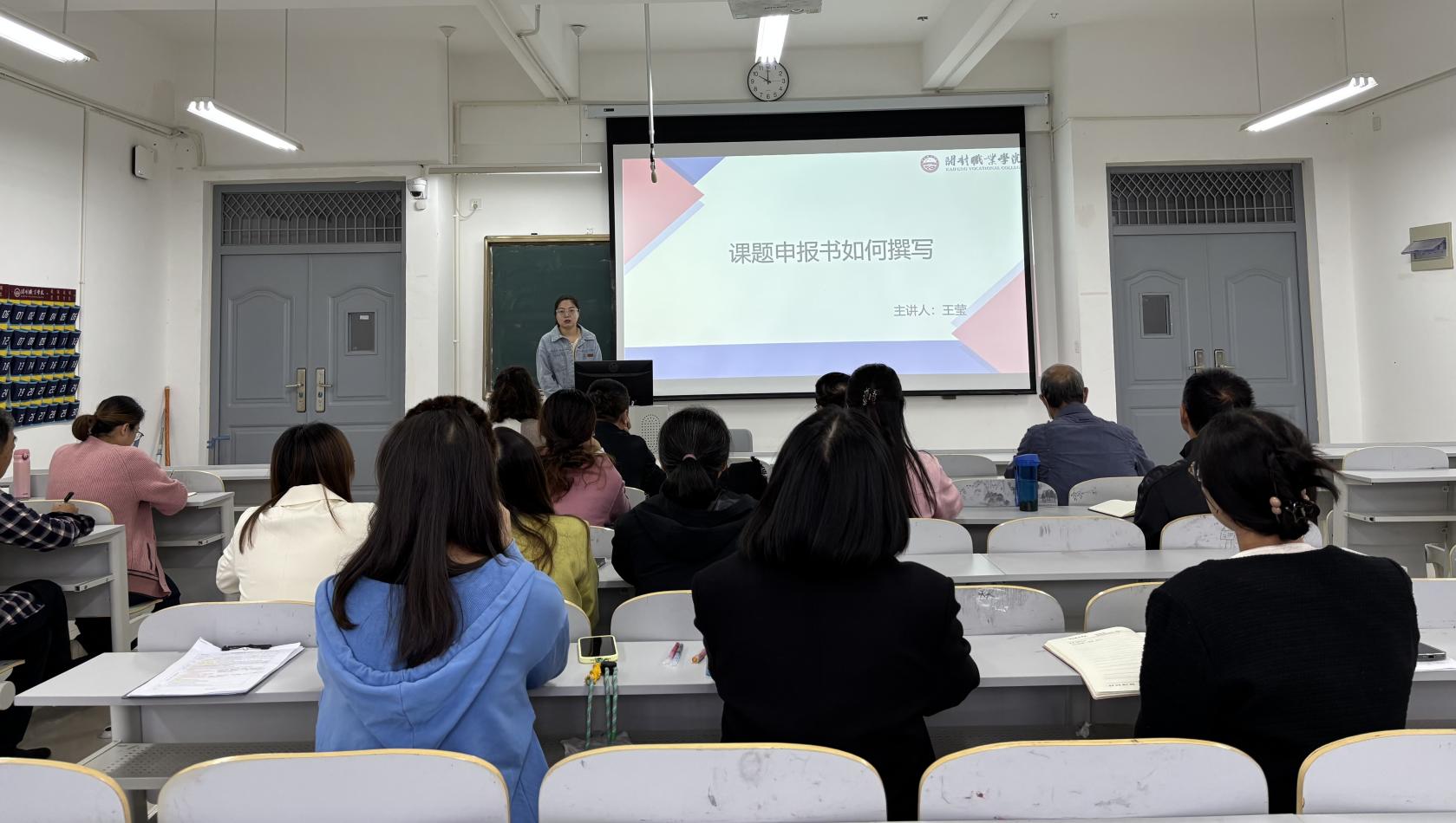 活动伊始,王莹老师以《课题申报如何撰写》为题,系统梳理了科研项目申报的关键环节。她结合多年课题申报经验,从“选题三部曲”——发现问题、聚焦问题到凝练题目入手,强调选题应立足国家战略、突出真问题、聚焦核心矛盾,并详细讲解了研究内容、框架设计、核心概念界定及理论分析框架的构建方法,为青年教师开展教科研工作提供了清晰路径。