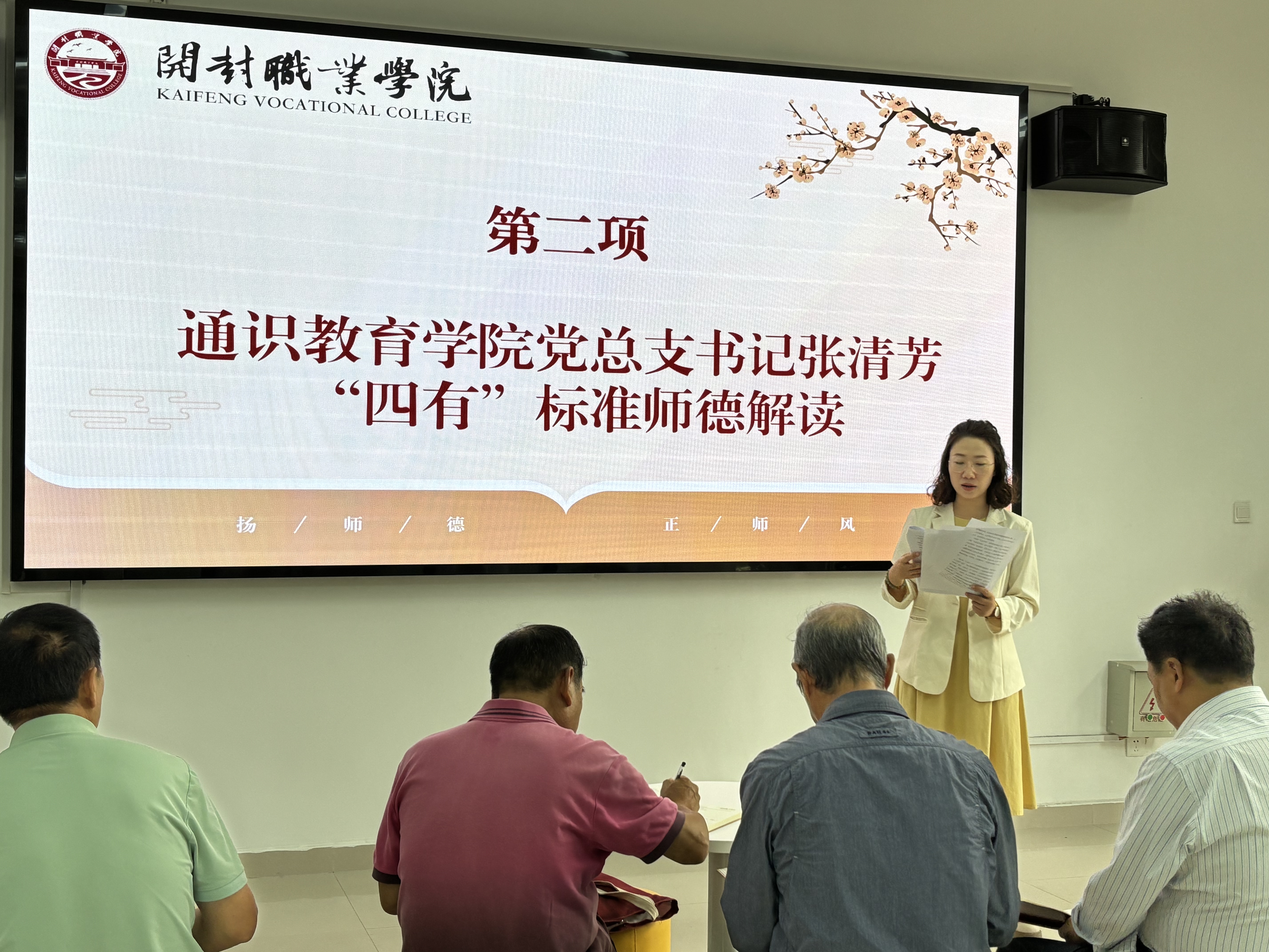 张清芳书记首先作主题讲话,强调“四有”好老师标准是新时代师德师风建设的重要指引。她指出,“有理想信念”是师德的灵魂,要求教师在课堂上传递正确价值观,坚守教育初心;“有道德情操”是师德的底色,体现为廉洁从教、资源共享与同事互助;“有扎实学识”是师德的基础,教师须深耕课程、精益求精;“有仁爱之心”是师德的温度,应耐心答疑、关爱学生、助力同事成长。