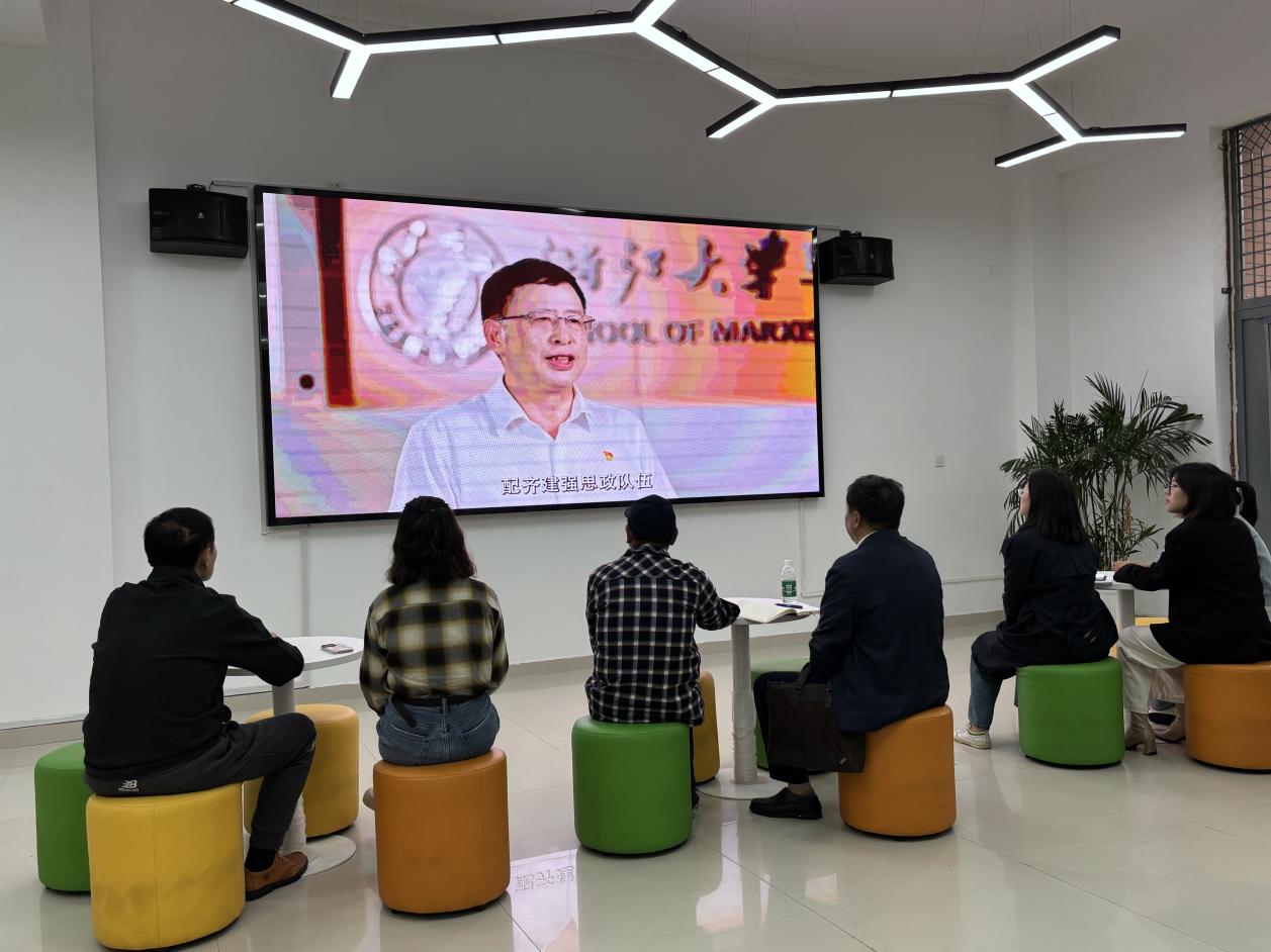 为深入学习贯彻党的教育方针,进一步加强思想政治引领,凝聚立德树人强大合力,9月19日下午4时,古天乐太阳集团网址组织全体党员教师及部分学生代表在国际交流中心集中观看了2025年高校党组织示范微党课第二阶段第2期《为全面建成教育强国凝聚强大的思政引领力》。