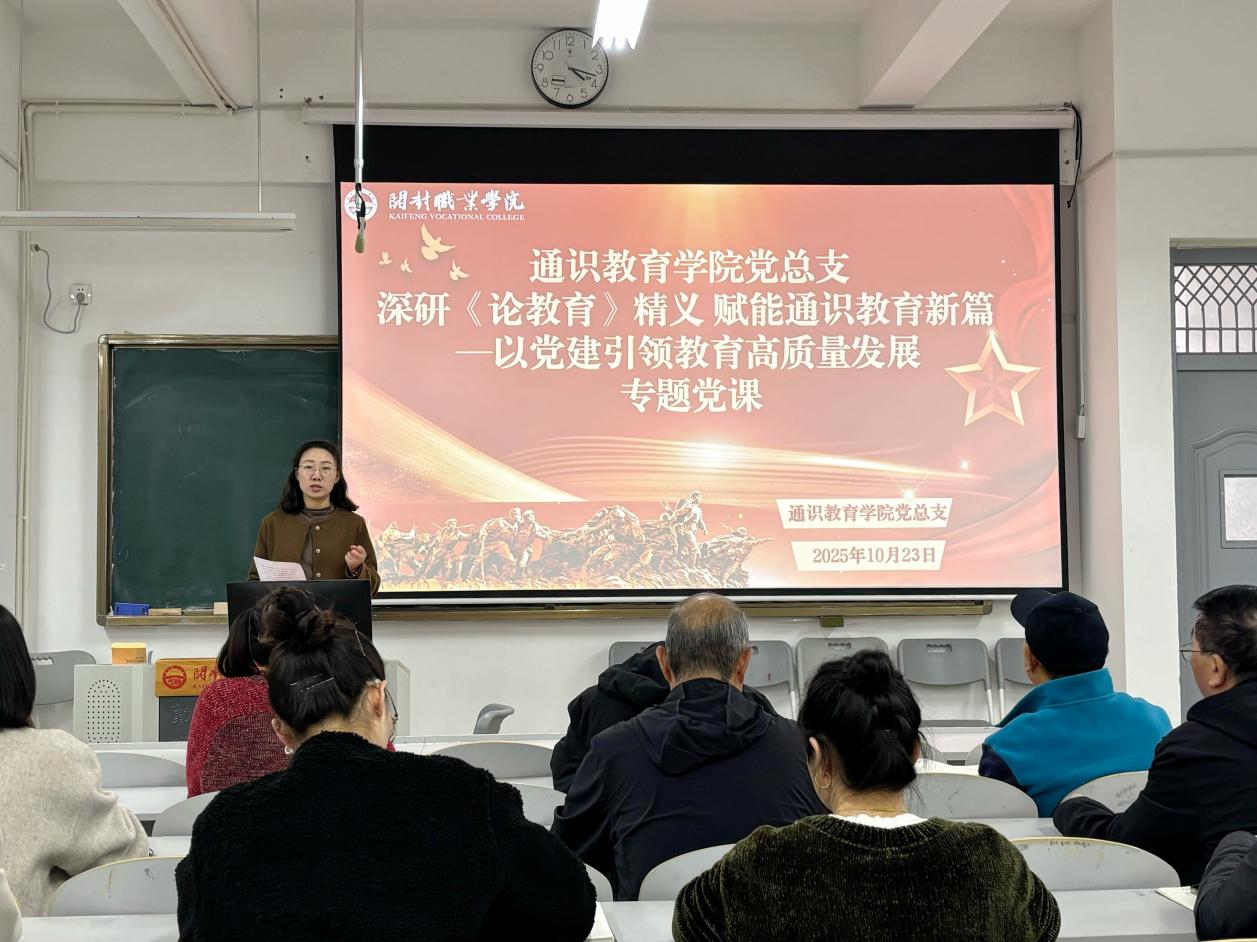 2025年10月23日下午,古天乐太阳集团网址党总支在希文楼423室开展“深研《论教育》精义 赋能太阳集团教育新篇—以党建引领教育高质量发展”专题党课。本次党课由学院党总支书记张清芳主讲,全体党员教师参加,现场学习氛围浓厚,交流深入,反响热烈。